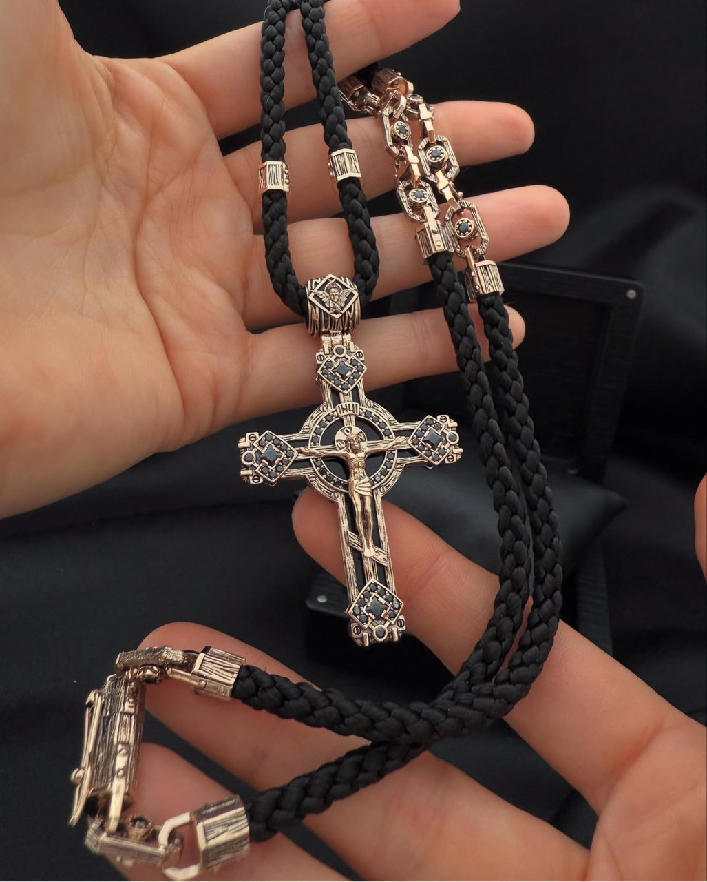 Червоне золото 585 проби з чорнінням + камінці чорні Фіаніти